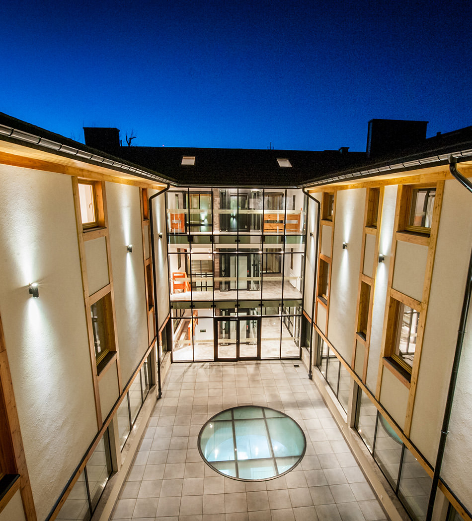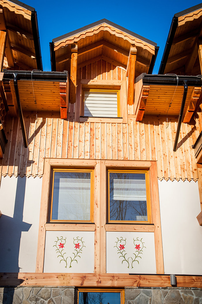 Dach o kącie nachylenia 30 stopni został narzucony przez plan miejscowy, wprowadzając formalne napięcie między lokalnym kontekstem a przyjętą formą. Tego typu spadki, bliższe architekturze tyrolskiej obecnej na Podhalu w czasach austro-węgierskich, stanowią subtelne odstępstwo od tradycyjnych proporcji regionu.